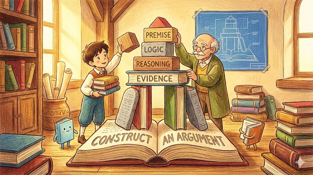 - (학생들은 논리학 수업에서 논증을 구성하는 법을 배웁니다.)