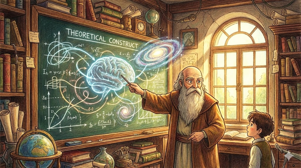 주로 학문이나 과학 분야에서 쓰입니다. 직접 눈으로 보거나 만질 수는 없지만, '어떤 현상을 설명하기 위해 학자들에 의해 정의되고 도입된 개념' 입니다. 예를 들어 심리학의 '지능(IQ)', 물리학의 '중력'이나 '암흑물질', 경제학의 '수요와 공급'처럼 이론을 뒷받침하기 위해 설정된 추상적인 도구입니다.