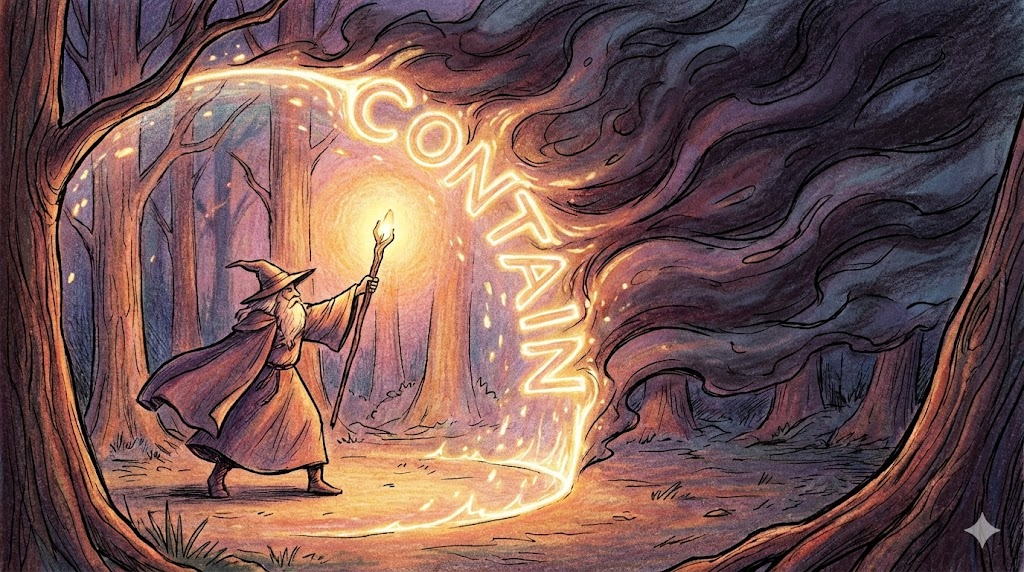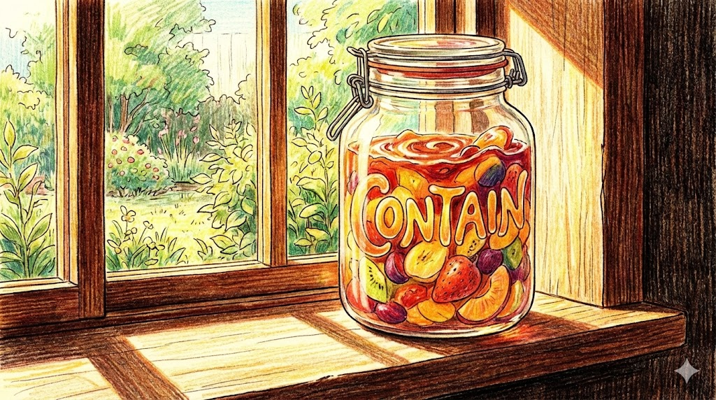 'contain'은 라틴어 con(함께) + *tenere(잡다/유지하다)*에서 유래했습니다. 무언가를 "담고 있다(포함하다)" 라는 뜻과, 맹수나 불길이 밖으로 나가지 못하게 꽉 잡고 있다는 의미에서 "억제하다(막다)" 라는 뜻으로 확장됩니다. 이 두 가지 뜻을 문맥에 따라 구별하는 것이 핵심입니다.