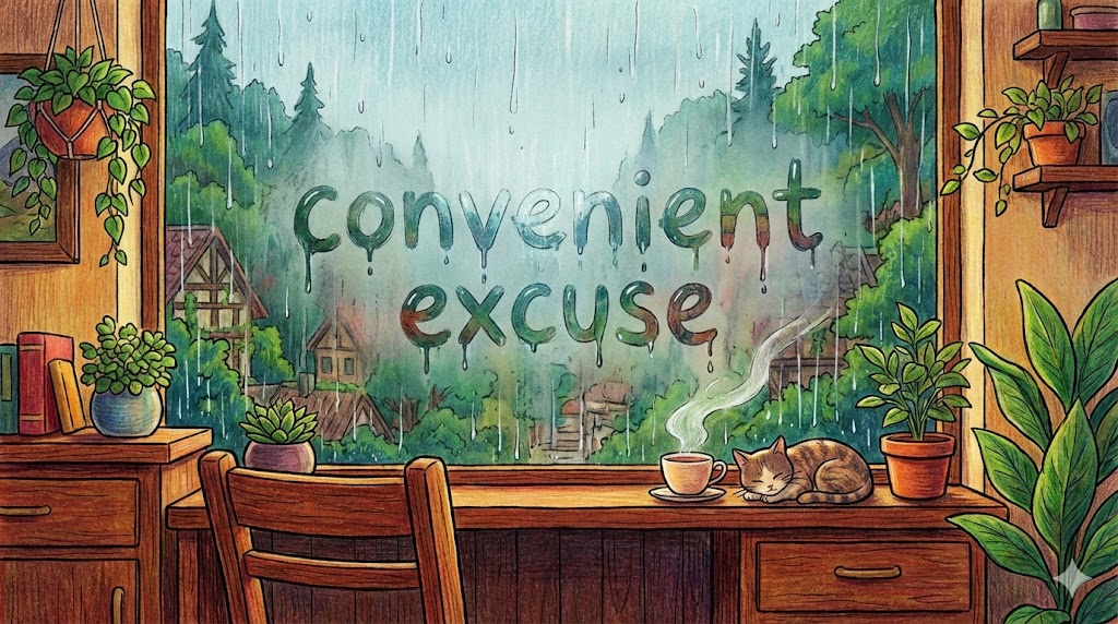 - Convenient excuse: 상황을 모면하기 위해 둘러대기 딱 좋은, '편리한 핑계(구실)' 입니다.