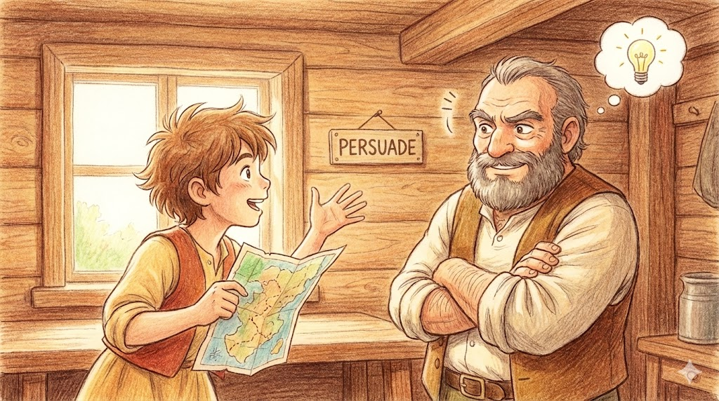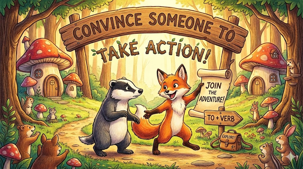 - 해석: 말로 설득해서 상대방이 어떤 행동을 하게 만드는 것입니다. (Persuade to)