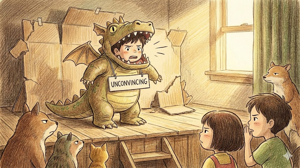 상대방의 말이나 행동이 '어설퍼서 도저히 믿음이 가지 않는' 상태입니다. 변명이 궁색하거나, 배우의 연기가 어색하거나(발연기), 논리의 앞뒤가 맞지 않을 때 씁니다. "Skeptical"이 믿지 못하는 사람의 태도라면, "Unconvincing"은 믿음을 주지 못하는 대상의 문제입니다.