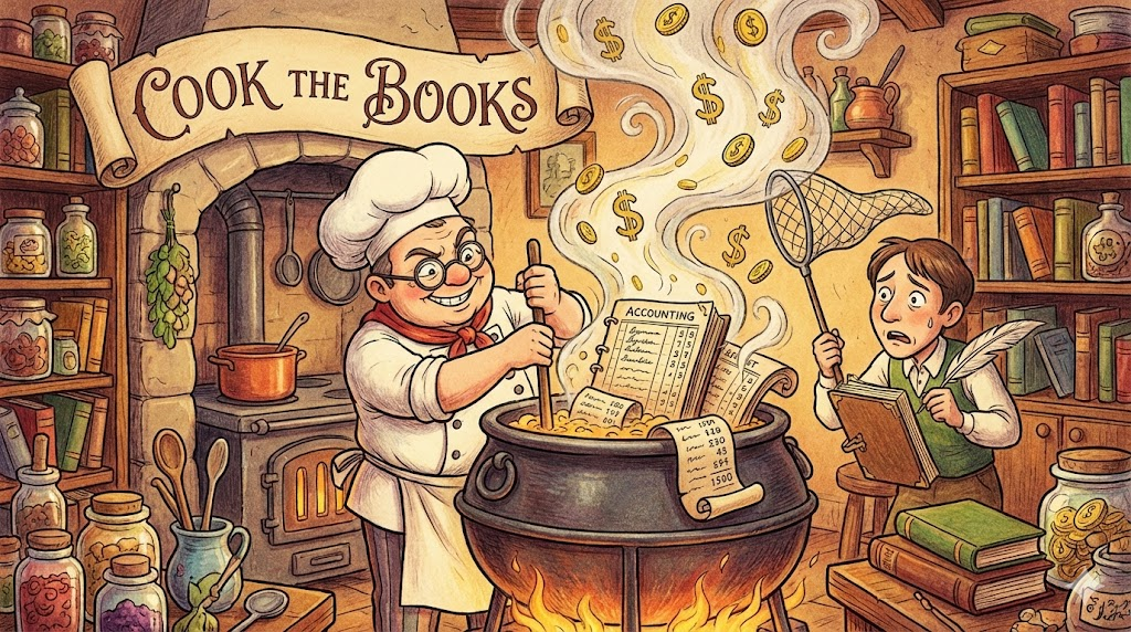 2. cook the books (장부를 조작하다/분식 회계하다)