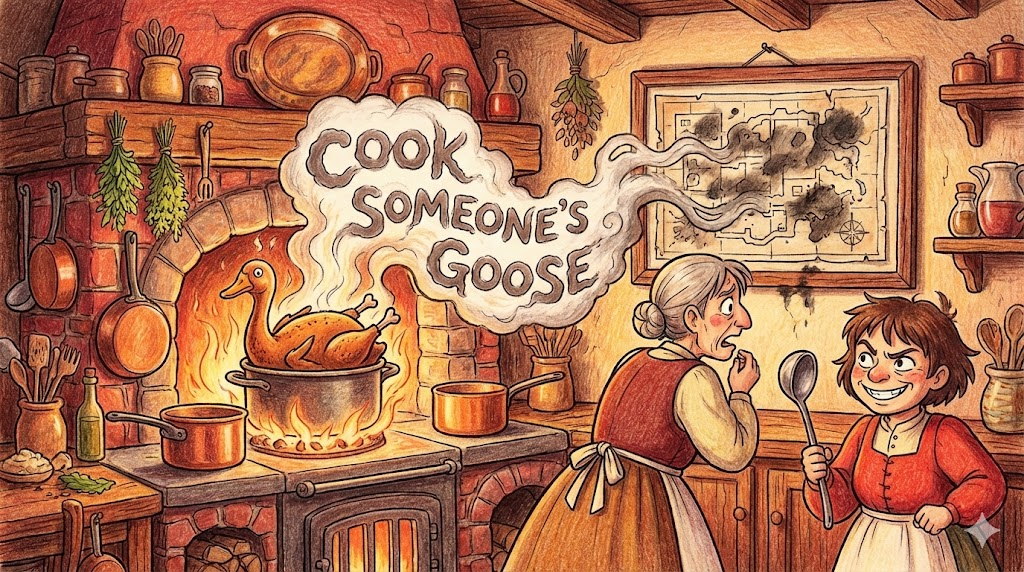 - 해석: (관용구) 남의 거위(Goose)를 요리해 버린다는 뜻으로, 상대방의 계획이나 성공 기회를 완전히 망가뜨리는 것을 말합니다.
