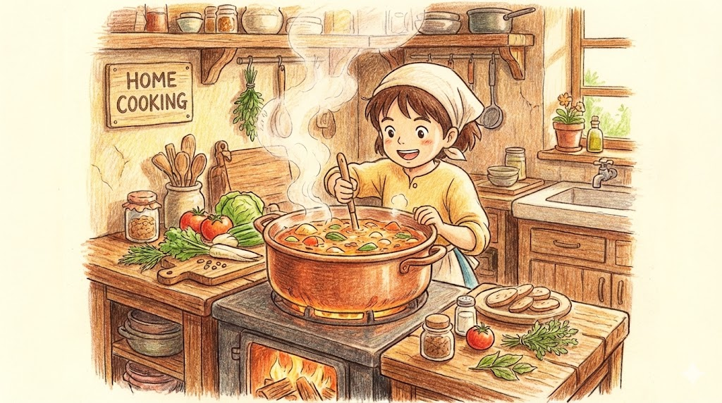 - 비유: "Let him cook" (그가 실력 발휘하게 내버려 둬)이라는 신조어처럼, 무언가를 준비하고 만들어내는 과정 자체를 의미합니다.