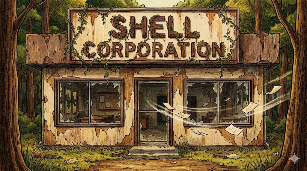 말 그대로 알맹이는 없고 '껍데기(Shell)만 있는 회사' 입니다. 직원이 있거나 물건을 만들지도 않고, 서류상으로만 존재하는 회사입니다.