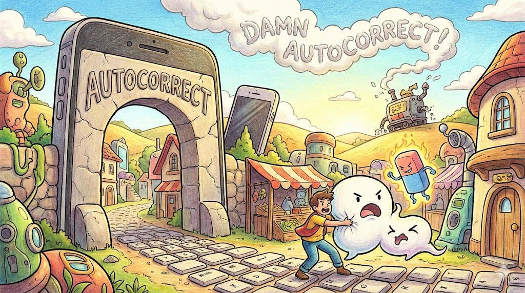 스마트폰 문자나 워드 프로세서에서 철자가 틀리면 자동으로 고쳐주는 기능입니다. 편리할 때도 있지만, 멀쩡한 말을 엉뚱한 단어로 바꿔서 민망한 상황을 만들기도 하죠. 그래서 애증의 대상입니다. "Damn autocorrect!(망할 자동 수정!)"라는 농담이 자주 쓰입니다.