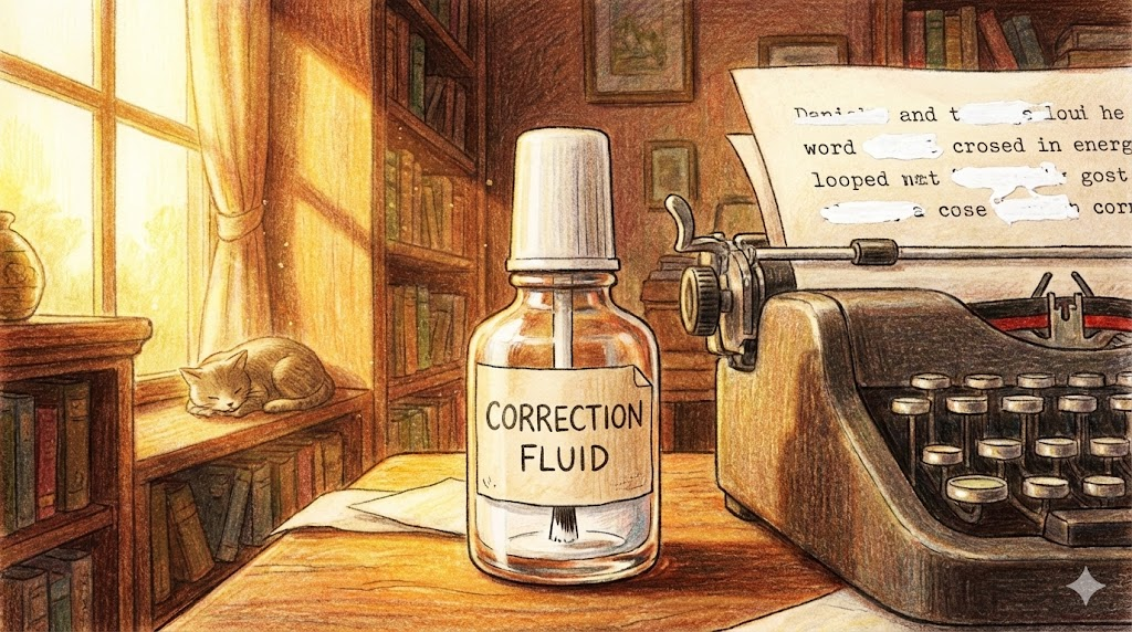 타자기나 볼펜으로 쓴 글씨를 지우기 위해 덧바르는 '하얀색 액체' 를 말합니다. 한국에서는 대표적인 브랜드 이름인 '화이트(White-out)'라고 주로 부르지만, 정식 명칭은 Correction fluid입니다. 요즘은 액체보다 테이프 형태의 'Correction tape' 를 더 많이 씁니다.