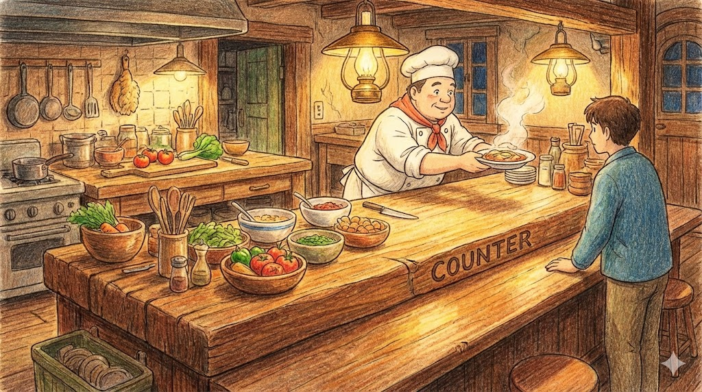 - 물리적: 부엌의 Counter는 내가 요리하는 행위와 마주하는 공간입니다.