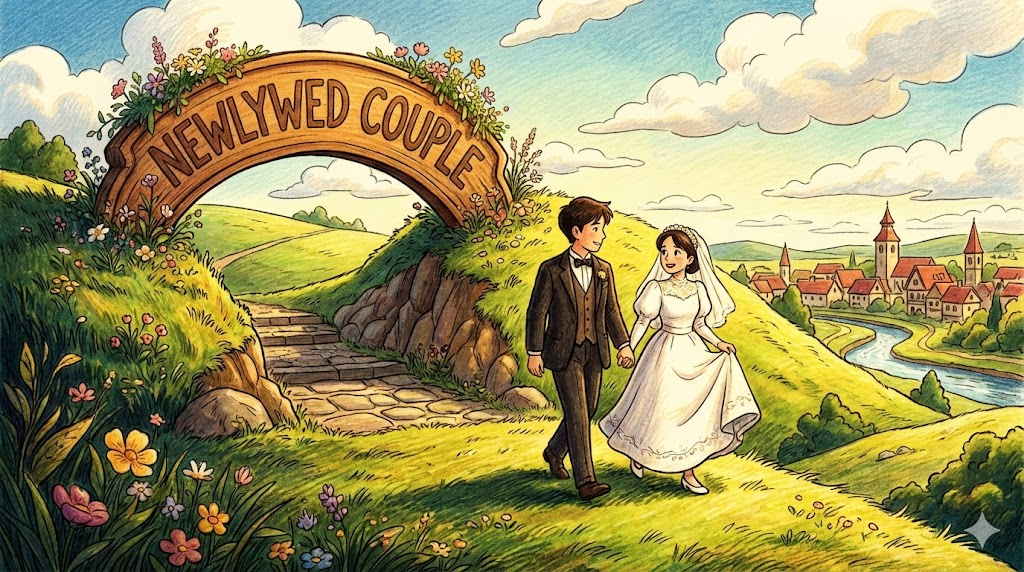 - Newlywed couple: 막 결혼한 '신혼부부' 입니다. (Newlyweds라고도 함)