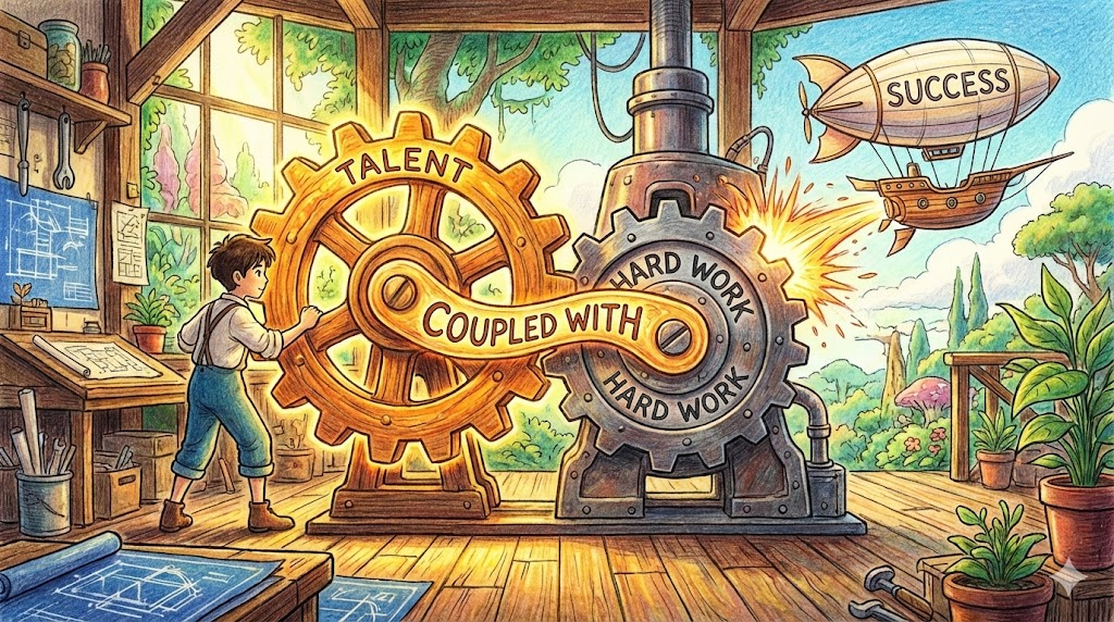 [Image illustrating 'A coupled with B' as two interlocking gears turning together to produce an outcome]