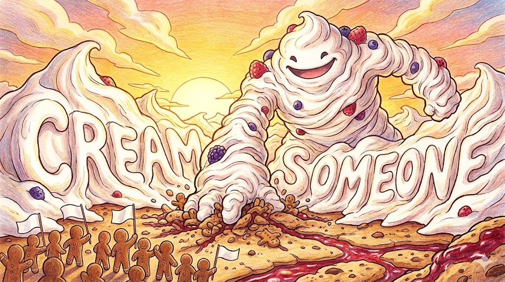 - 동사적: 상대를 "Cream" 한다는 것은 마치 부드러운 크림처럼 으깨버린다는 뜻으로, 스포츠 경기 등에서 아주 처참하게 이겼을 때 쓰는 거친 표현입니다.