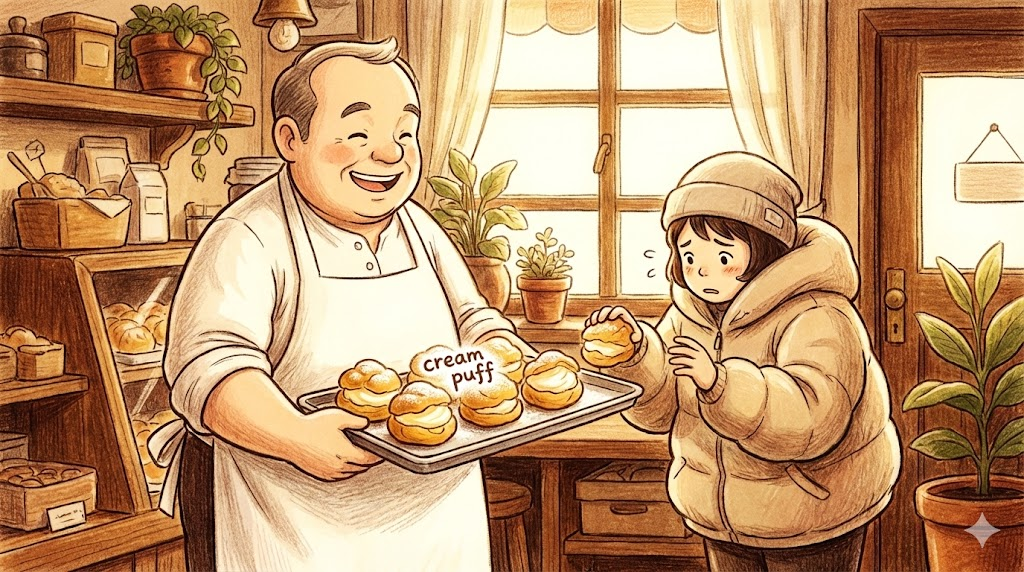 원래는 얇고 바삭하게 부푼 빵(퍼프) 안에 달콤한 크림이나 커스터드를 잔뜩 채운 디저트(슈크림)를 뜻합니다. 하지만 일상 회화나 슬랭으로는 빵 속이 텅 비어있고 부드러운 특징에 빗대어, 겉모습에 비해 '체력이나 멘탈이 약하고 물러 터진 사람' 을 조롱할 때 자주 쓰입니다. 중고차 시장에서는 드물게 '관리가 기가 막히게 잘 된 차'를 뜻하기도 합니다.