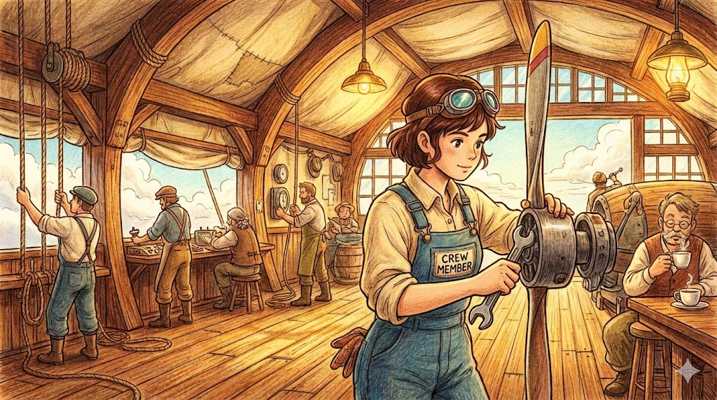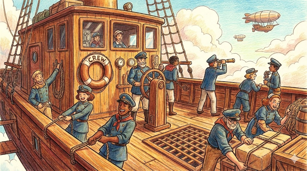 | Crew | 현장/육체적 팀워크. 도구를 다루거나 몸을 써서 함께 움직이는 특수 인력. | 비행기, 배, 영화 촬영장, 공사장 |