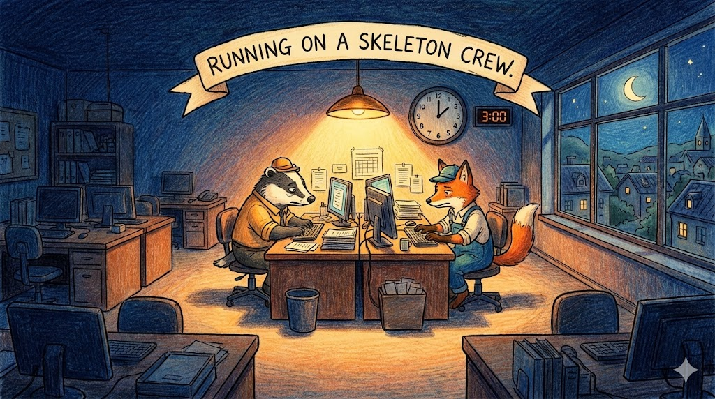 - (우리는 주말 동안 서버를 모니터링할 최소 인원만 남겨두었습니다.)