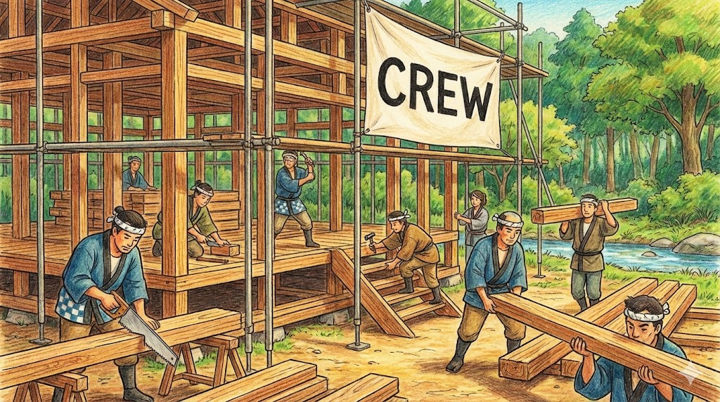 crew는 각자의 자리에서 역할을 다해 큰 기계를 움직이거나 프로젝트를 완성하는 '현장의 영웅들'입니다. 여러분의 인생이라는 배를 함께 움직여줄 든든한 Crew가 곁에 있나요?
