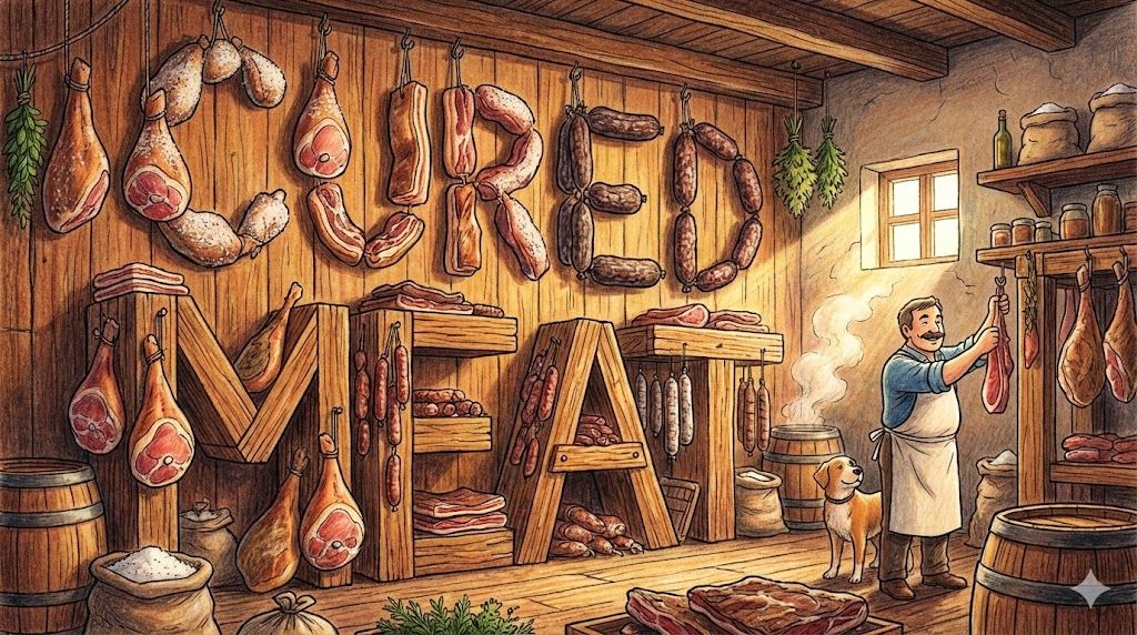 여기서 'Cure'는 병을 고치는 것이 아니라, 고기를 오랫동안 보관하기 위해 소금에 절이거나(Salting), 훈제하거나(Smoking), 건조하는(Drying) '보존 처리' 과정을 뜻합니다. 베이컨, 햄, 살라미, 하몽 등이 대표적인 cured meat입니다.