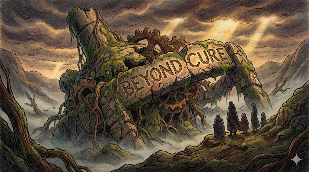 | beyond cure | 치료 불가능한 | 가망이 없이 악화된 상태 |