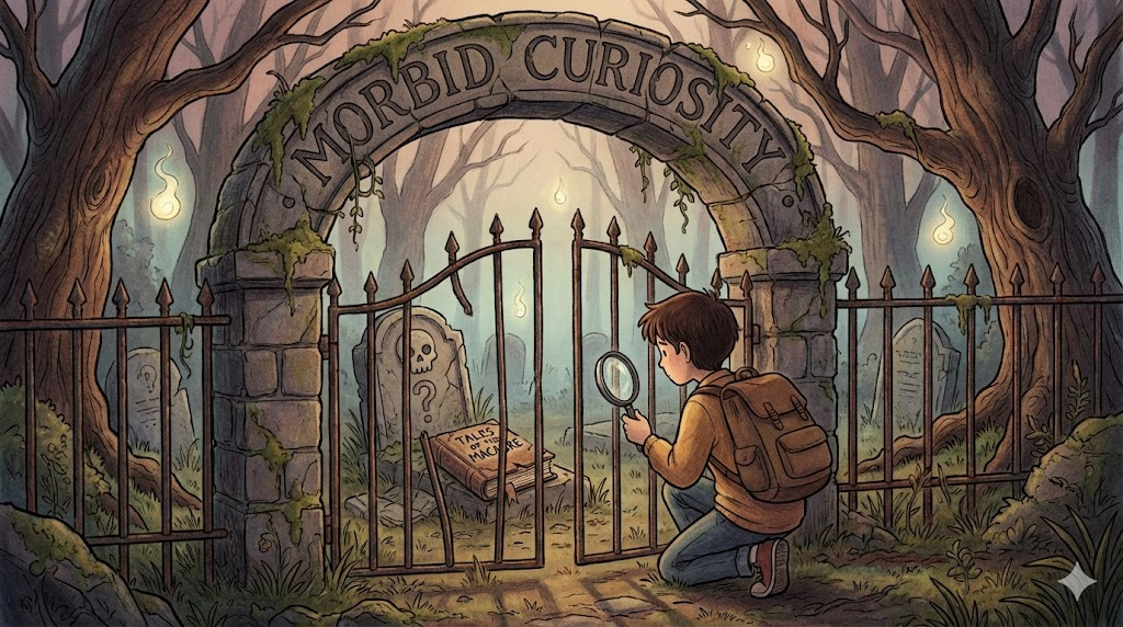 죽음, 사고 현장, 범죄 사건, 혹은 공포스러운 대상처럼 보통은 피하고 싶어 하는 '불쾌하거나 자극적인 것에 이상하게 끌리는 심리' 를 말합니다. 고속도로 사고 현장에서 사람들이 속도를 줄여 구경하는 심리(Rubbernecking)를 설명할 때 자주 쓰이는 다소 어두운 느낌의 표현입니다.