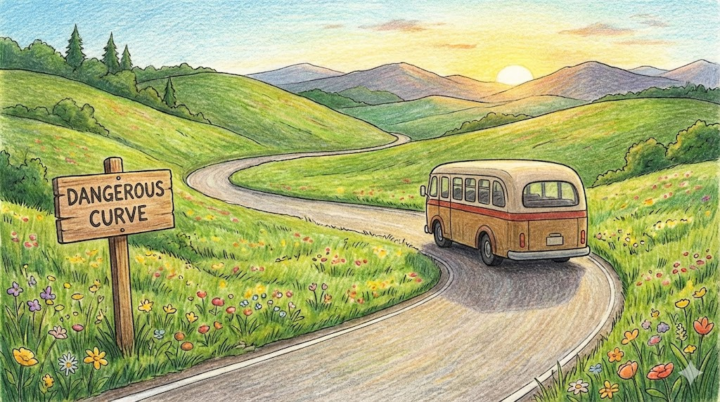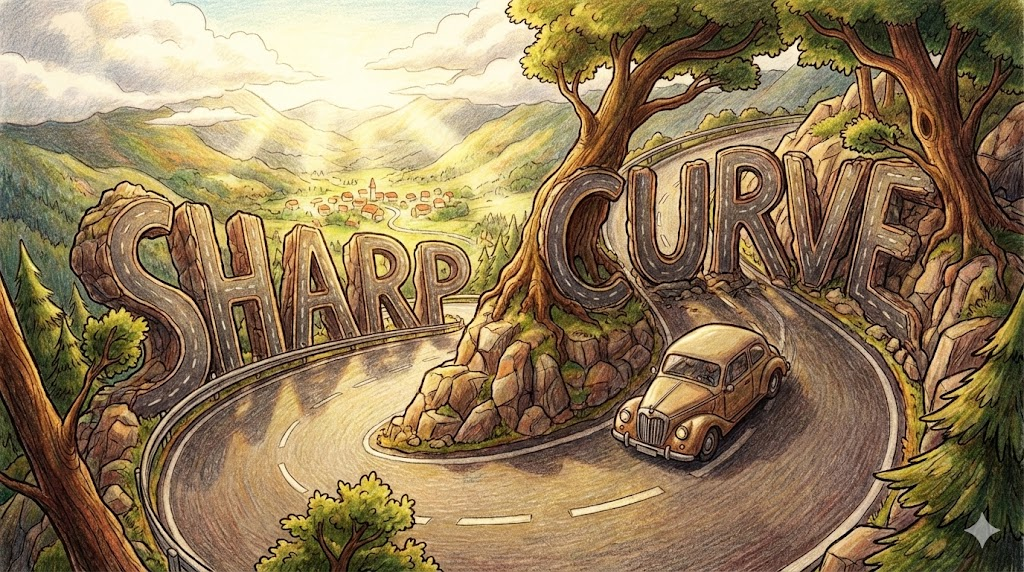 9. sharp curve (급커브 / 굽은 길)