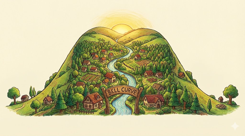 - (종형 곡선에서 평균을 벗어난 예외적인 값들은 양쪽 끝에 위치합니다.)