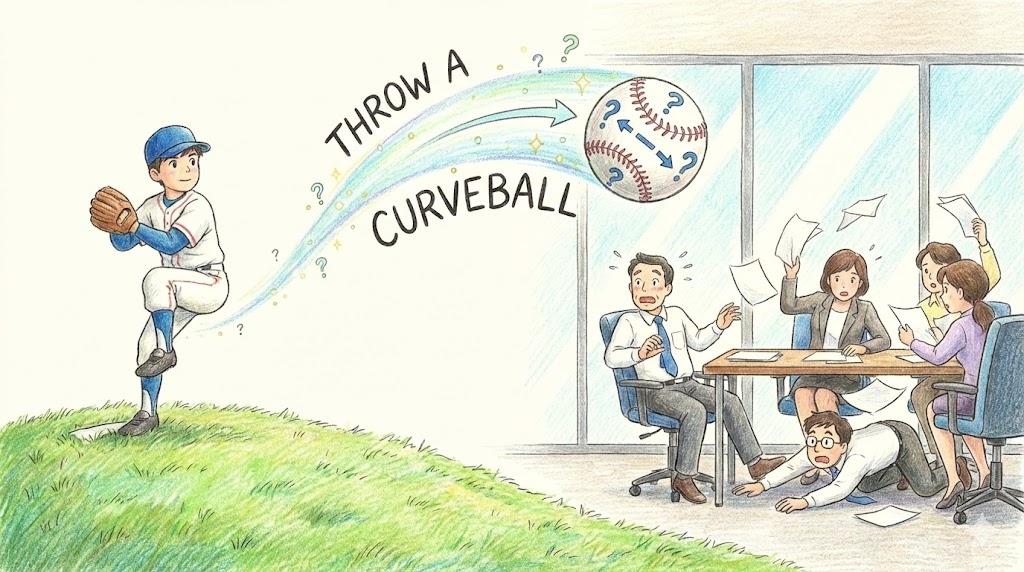 3. throw a curveball (허를 찌르다 / 예상치 못한 문제를 던지다)