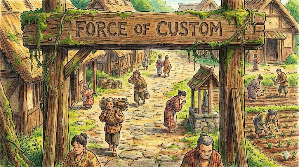- 해석: (사회/심리) 사람들이 왜 그렇게 행동해야 하는지 논리적으로 따지지 않고, 그저 '예전부터 늘 그래왔으니까' 무의식적으로 따르게 만드는 강력한 사회적 힘입니다.