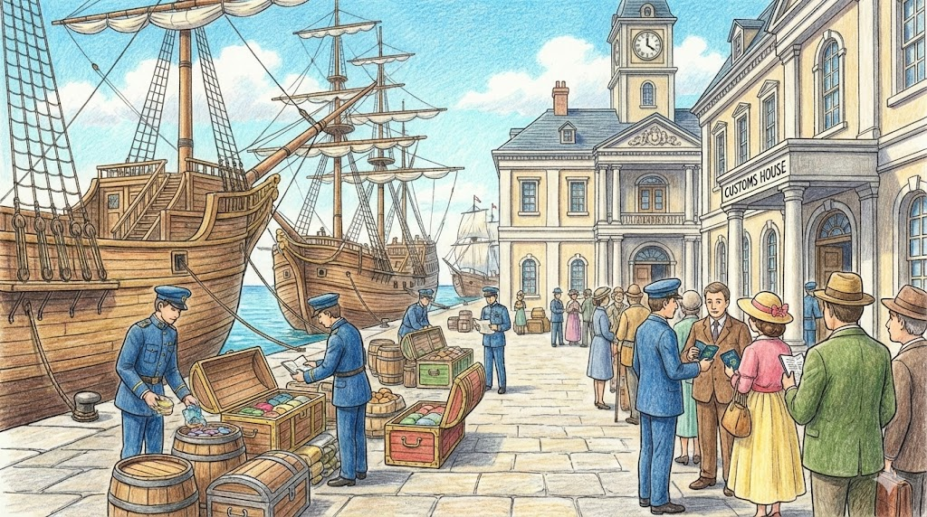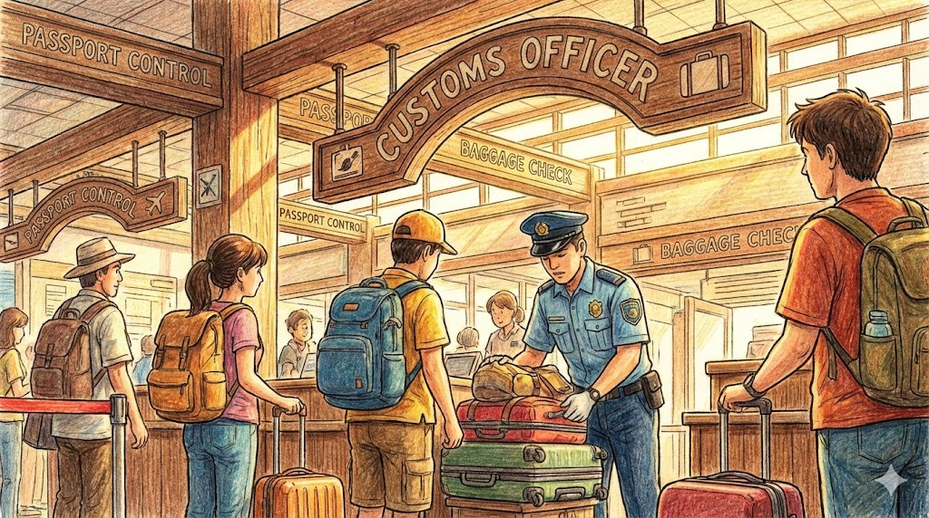 단어 끝에 's' 가 붙어 'Customs' 가 되면 뜻이 완전히 바뀌어, 공항이나 항구의 '세관(국경을 넘는 물건을 검사하고 세금을 매기는 곳)' 과 관련된 전문 용어가 됩니다.