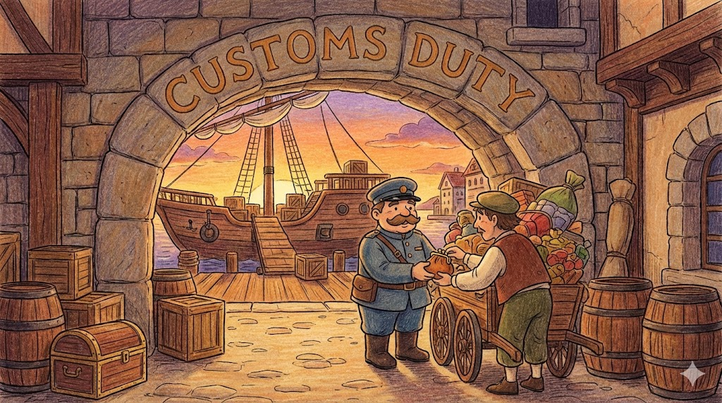 외국에서 물건을 사서 국내로 들여올 때 정부에 내야 하는 세금(Tax)입니다. 보통 복수형인 customs duties로도 많이 쓰입니다. 면세 한도를 넘는 물건을 사거나 직구를 할 때 추가로 지불해야 하는 비용을 뜻합니다.
