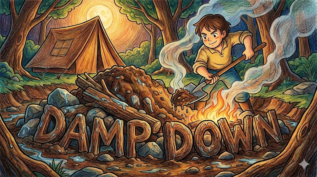 | damp down | 가라앉히다 | 물을 뿌리거나 감정을 억눌러 진정시킴 |