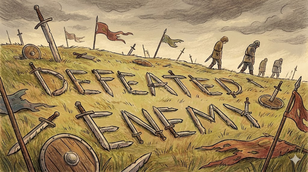 - 해석: 경쟁자나 적을 물리치는 행위 그 자체를 강조합니다.