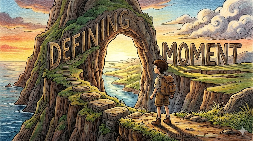 - 해석: (에세이/전기) 한 사람의 인생이나 역사의 흐름에서 그 성격이나 정체성을 완전히 결정짓거나 바꾸어 놓은 아주 중요한 순간을 말합니다.