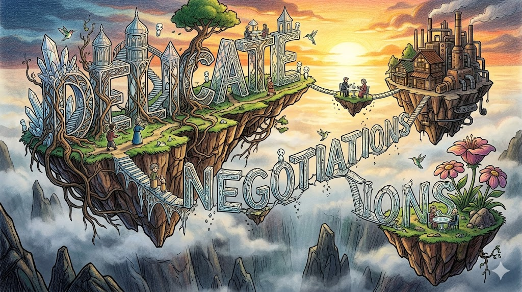 delicate negotiations [ˈdɛlɪkət nɪˌɡoʊʃiˈeɪʃənz]