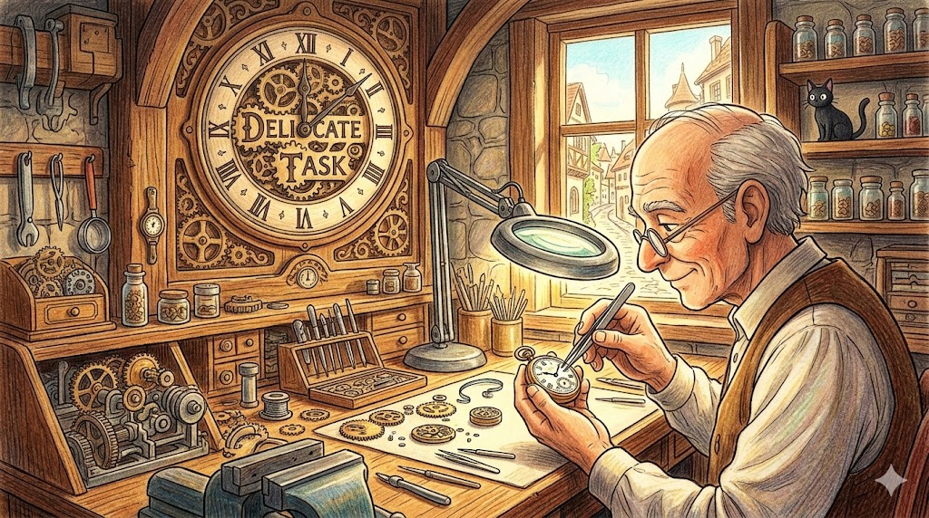 물리적으로 아주 정교하고 미세한 기술이 필요한 작업(예: 시계 수리, 뇌수술)일 수도 있고, 심리적으로 누군가를 설득하거나 해고 통보 같은 나쁜 소식을 전하는 등 고도의 배려가 필요한 '어려운 임무'를 모두 아우르는 표현입니다.