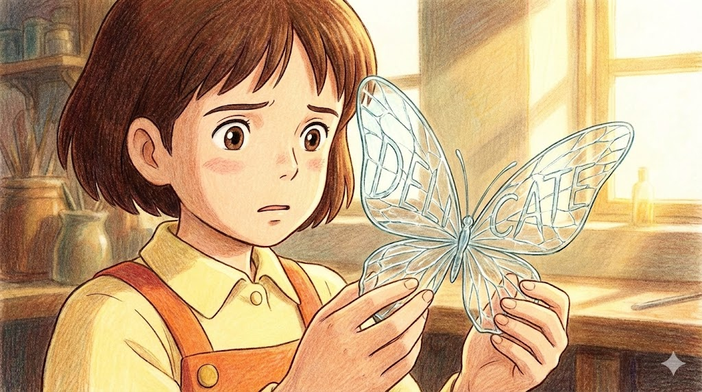 delicate은 소중하게 다뤄달라는 신호입니다. 비싼 와인 잔이든, 친구의 예민한 고민이든, 그 가치를 유지하기 위해서는 Delicate한 접근이 필요합니다.