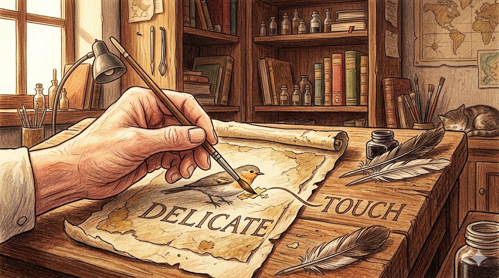 - delicate touch: 예술 작품을 다루거나 정밀 기계를 만질 때 요구되는 아주 조심스럽고 '섬세한 손길(터치)' 입니다.
