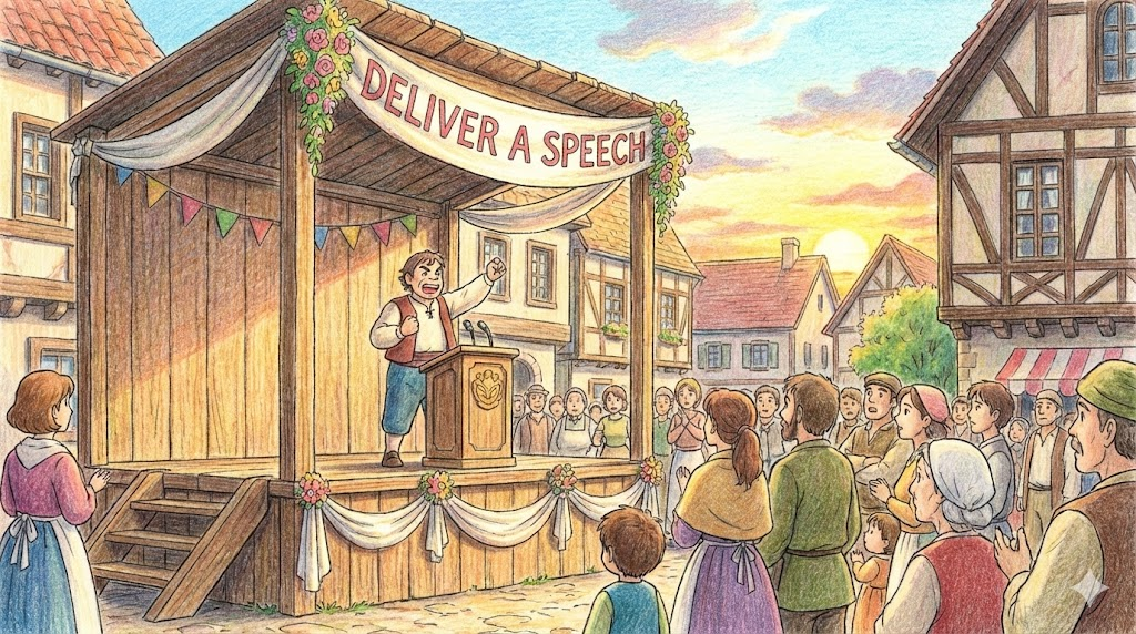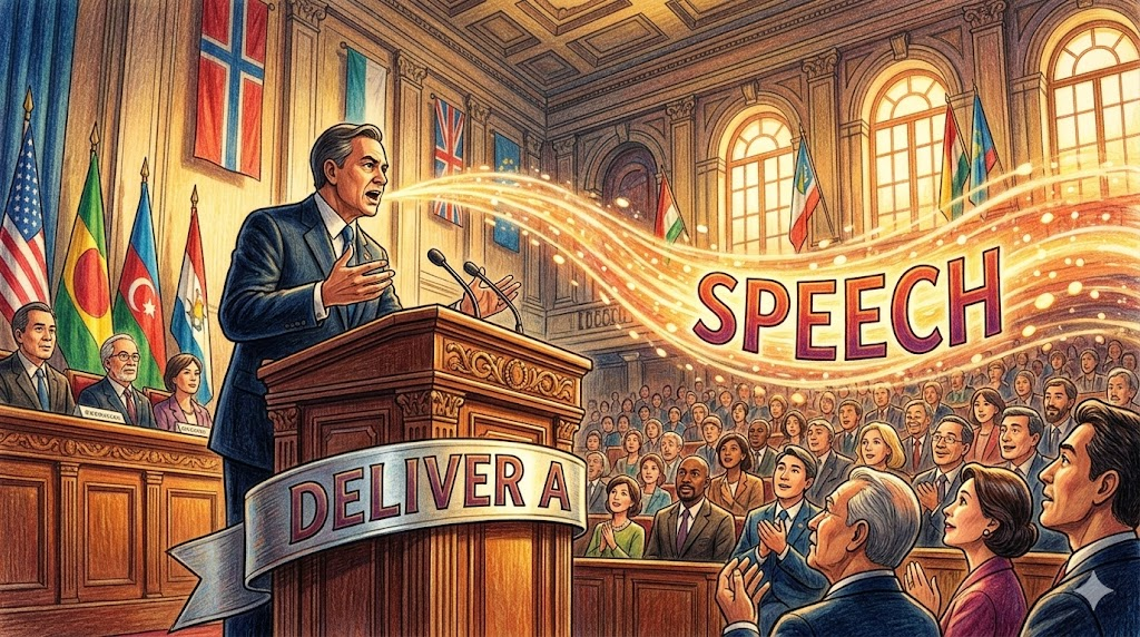 deliver a speech [dɪˈlɪvər ə spitʃ]