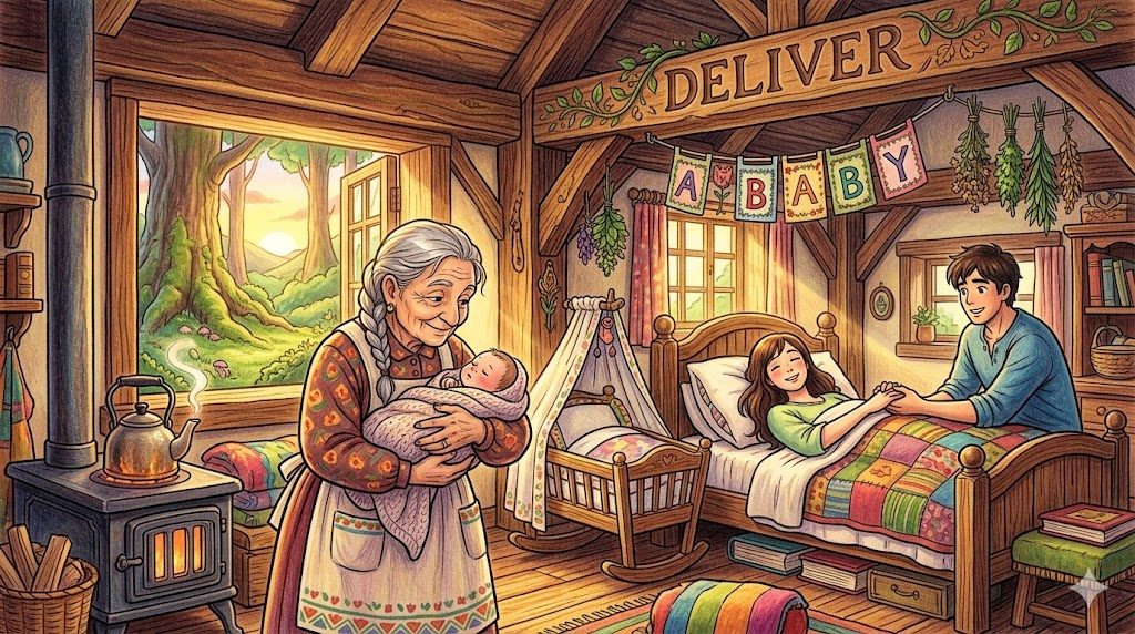 - The midwife helped to deliver the baby at home.