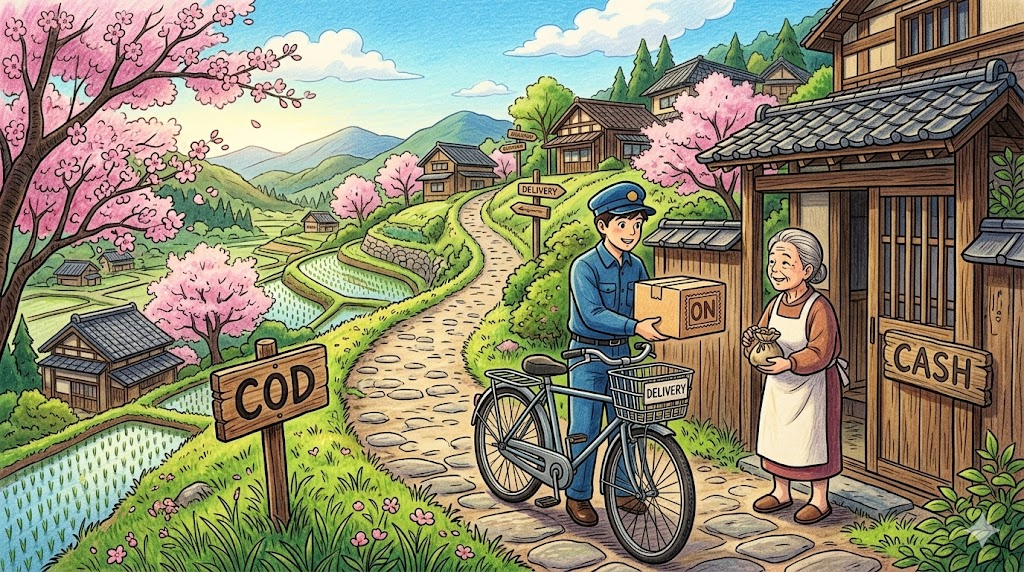 물건을 주문할 때 미리 결제하지 않고, 택배 기사나 배달원이 물건을 배달(delivery)해 줄 때 '그 자리에서 현금이나 카드로 직접 상품 대금을 결제하는 방식' 을 말합니다. 온라인 쇼핑이나 배달 음식 주문에서 줄여서 COD라고 아주 흔하게 표기합니다. 한국의 '만나서 결제'나 '착불(배송비뿐만 아니라 상품 가격까지 포함하는 경우)'과 같은 개념입니다.