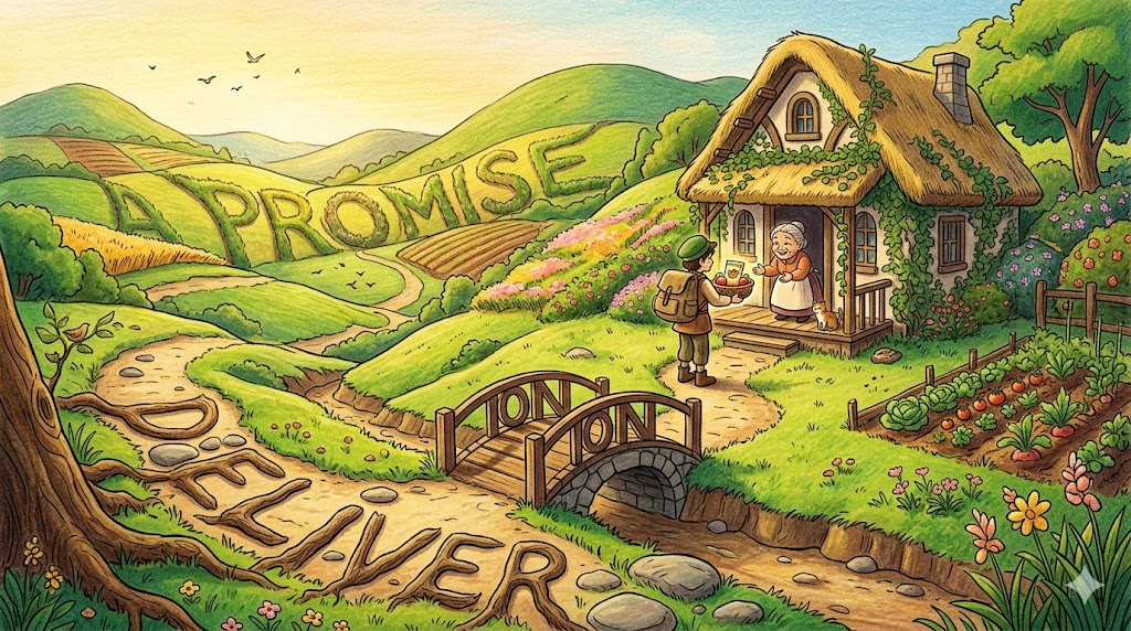 - 해석: (비즈니스/사회) 말로만 끝나는 것이 아니라, 약속했던 성과나 결과물을 실제로 사람들에게 '가져다주는(배달하는)' 것을 뜻합니다.