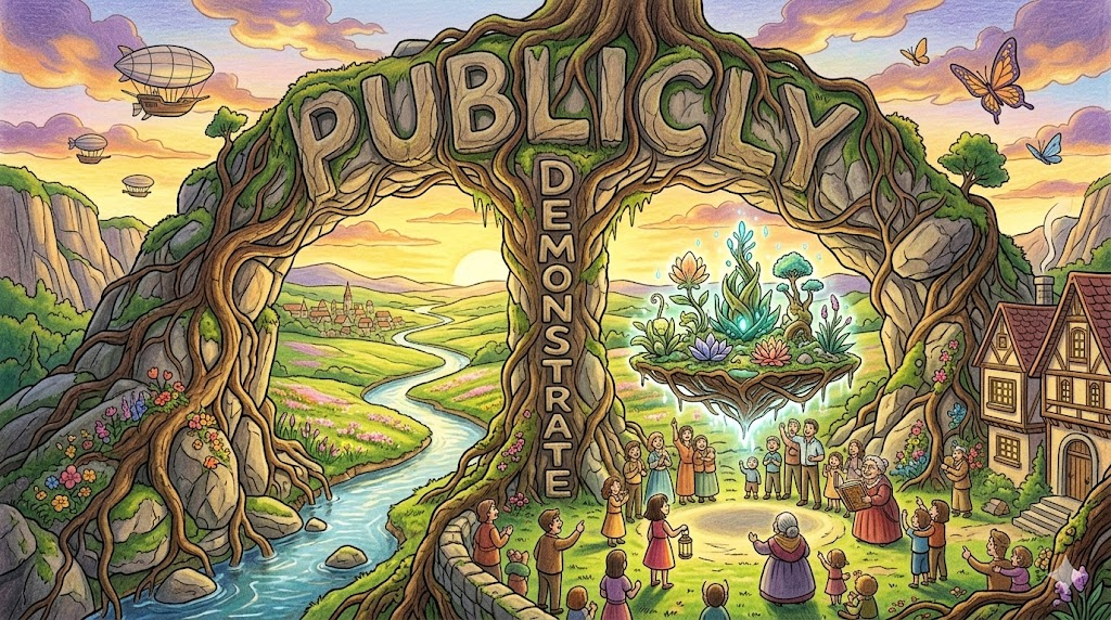 publicly demonstrate [ˈpʌblɪkli ˈdɛmənˌstreɪt]