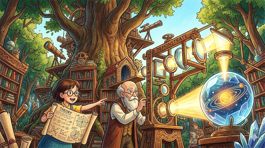 demonstrate a theory [ˈdɛmənˌstreɪt ə ˈθiəri]