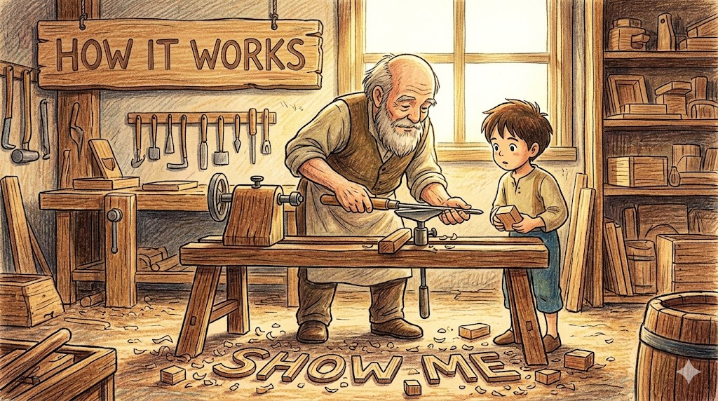 | 실행 교육 (Tutorial) | 어떻게 작동하는지 직접 행동으로 옮겨 가르쳐줌. | 시연/설명 |
