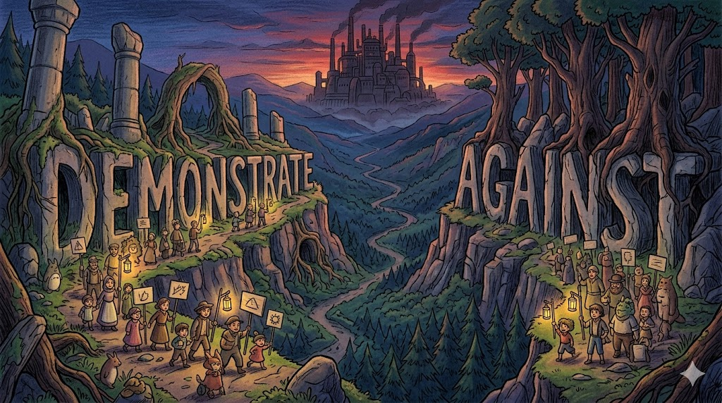 'demonstrate'의 또 다른 핵심 의미인 '시위하다'로 쓰일 때 가장 찰떡처럼 붙어 다니는 전치사 'against(~에 반대하여)'와의 조합입니다. 불공정한 법안, 정책, 전쟁 등 사회적 문제에 대해 사람들이 모여 피켓을 들고 구호를 외치며 '단체 행동을 통해 강력한 반대 의사를 표명할 때' 가장 격식 있고 대표적으로 쓰이는 뉴스 용어입니다. (참고로 찬성/지지를 위해 시위할 때는 'demonstrate in favor of'나 'demonstrate for'를 씁니다.)