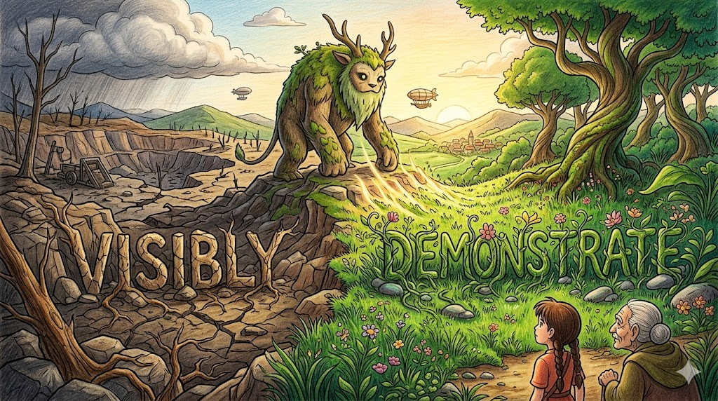 - 해석: (격식/기업 비전) 회사나 조직이 특정한 가치(예: 환경 보호, 고객 만족)를 위해 진심으로 노력하고 있음을 구체적인 행동이나 정책으로 증명할 때 씁니다.
