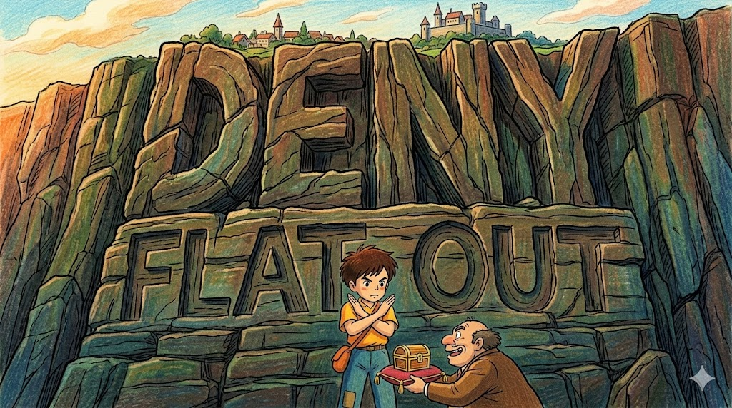 | Deny flat out | 칼같은 단호함: 감정보다는 "아닙니다."라고 일고의 가치도 없다는 듯 평평하게(flat) 딱 잘라서 틈을 안 주는 느낌. | 단호하고 냉정한 거절 강조. |