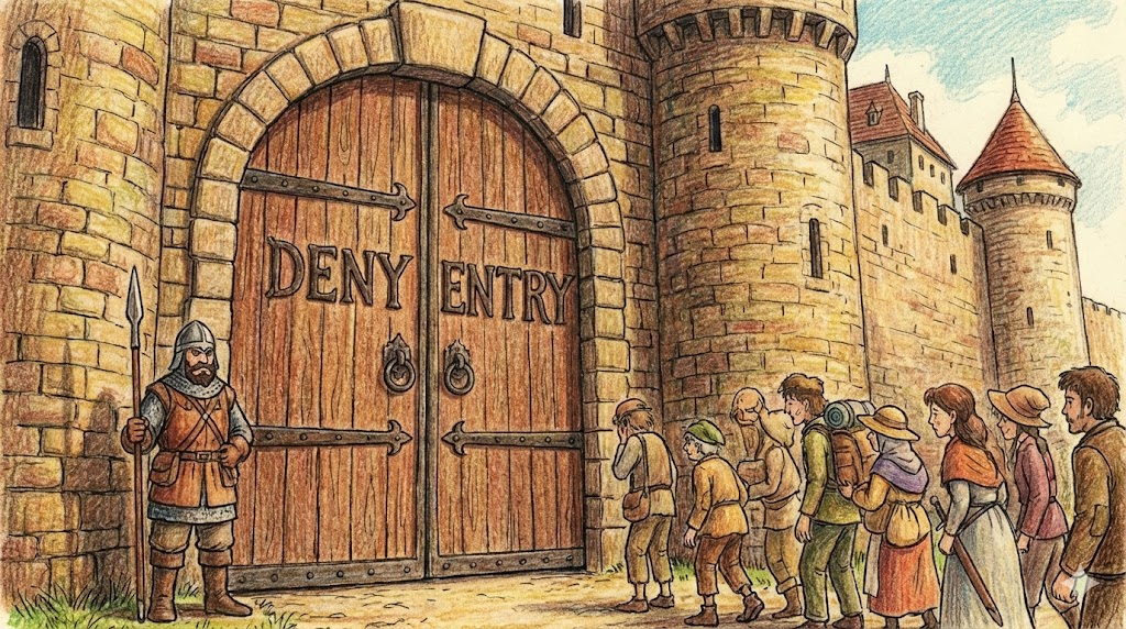 물리적인 장소나 디지털 공간(파일, 웹사이트, 시스템 등)에 들어오는 것을 '차단' 할 때 씁니다. 컴퓨터를 하다가 한 번쯤 보셨을 "Access Denied(접근 거부)"라는 메시지를 떠올리시면 됩니다. 보안상의 이유로 허가된 사람 외에는 막아버리는 단호한 뉘앙스가 강합니다.