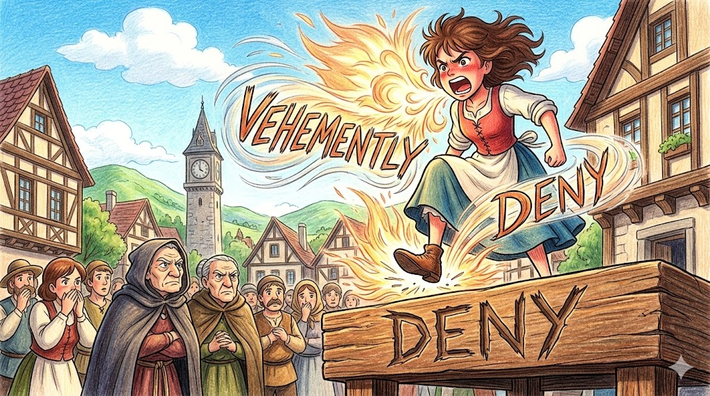 | 강한 부정 (Saying No) | 라틴어 denegare. 어떤 사실에 대해 "아니"라고 딱 잘라 말함. | 사실 부정/부인 |
